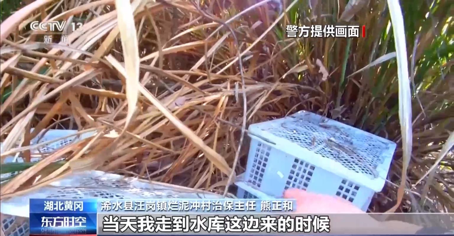 浠水县汪岗镇烂泥冲村治保主任 熊正和:当天我走到水库这边的时候,看着有点不对劲。目测一二百只大白鹭在天上飞来飞去,闹得特别厉害。地面摆了五筐大白鹭幼鸟,当时我就跟公安机关联系了。